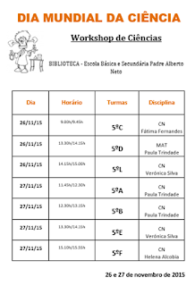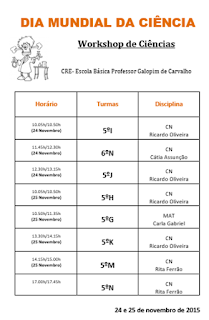 De 24 a 27 de novembro, os professores de Ciências Naturais do 2.º ciclo, vão assinalar o Dia Mundial da Ciência com uma semana dedicada às ciências com a colaboração do CRE.